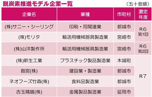 当機構では、脱炭素の取り組みを促進する県内製造業者を「脱炭素推進モデル企業」として選定し、連携協定を締結しているリコージャパン株式会社宮崎支社と協働して、エネルギー使用に係る現状把握から削減計画の策定、計画に基づく具体的な取り組みまでを伴走支援することにより、見本となるロールモデル企業の創出を目指しています。そのモデル企業の中から、今回は、株式会社サニー・シーリングの取り組みをご紹介します。